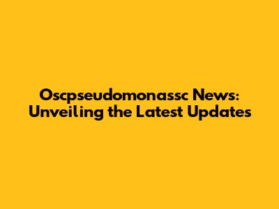 Oscpseudomonassc News: Unveiling The Latest Updates
