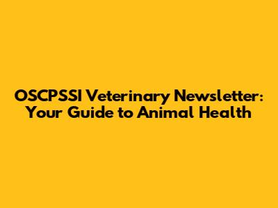 OSCPSSI Veterinary Newsletter: Your Guide To Animal Health