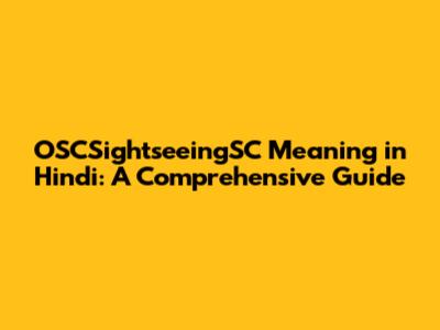 OSCSightseeingSC Meaning In Hindi: A Comprehensive Guide