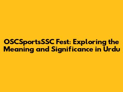 OSCSportsSSC Fest: Meaning And Significance In Urdu