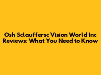 Osh Sclauffersc Vision World Inc Reviews: What You Need To Know