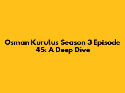 Overall, Osman Kurulus Season 3, Episode 45 was a fantastic installment. It delivered on all fronts. The episode was a high-quality production. The storytelling was captivating. The performances were brilliant. The action sequences were exciting. The direction was excellent. The writers did a great job. The production values were impressive. The episode had a high entertainment value. The character developments were interesting. The conflicts were intense. The suspense was high. The viewers were on the edge of their seats. The episode was worth watching. The show is great. I can't wait for the next episode. I am sure that you will love it as much as I did. I can't wait to see what will happen next.