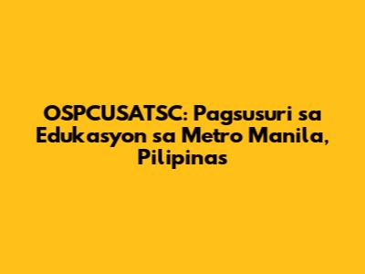 OSPCUSATSC: Pagsusuri Sa Edukasyon Sa Metro Manila, Pilipinas