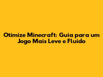 Otimize Minecraft: Guia Para Um Jogo Mais Leve E Fluido