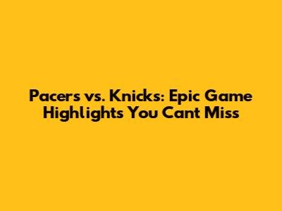 Pacers Vs. Knicks: Epic Game Highlights You Can't Miss