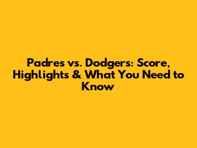 Padres Vs. Dodgers: Score, Highlights & What You Need To Know