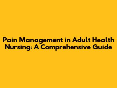 Pain Management In Adult Health Nursing: A Comprehensive Guide