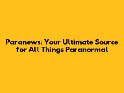 Paranews: Your Ultimate Source For All Things Paranormal