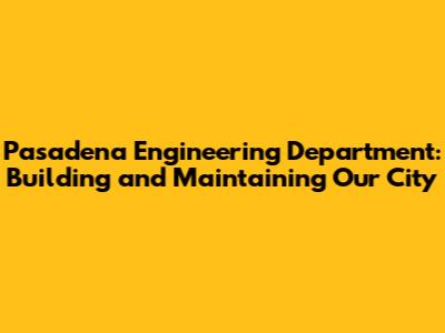 Hey everyone! Let's dive into the heart of Pasadena and explore the Pasadena Engineering Department. These guys are the unsung heroes who keep our city running smoothly, ensuring everything from our roads to our water systems are in tip-top shape. It's super important to understand what they do because their work directly impacts our daily lives. So, buckle up as we explore the crucial role they play in making Pasadena a great place to live.