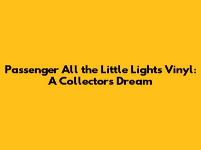 Passenger All The Little Lights Vinyl: A Collector's Dream