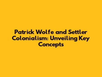 Patrick Wolfe & Settler Colonialism: Key Ideas