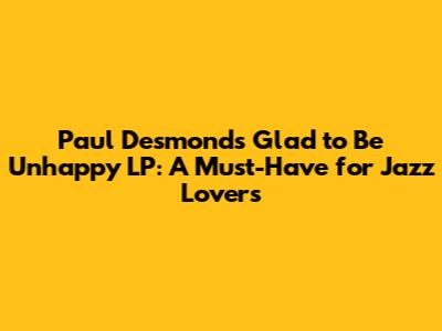 Hey guys! Let's dive into a fantastic album that every jazz enthusiast should have in their collection: Paul Desmond's "Glad to Be Unhappy" LP. This record isn't just a collection of songs; it's an experience, a journey through smooth, sophisticated sounds that only Desmond could deliver. Released in 1965, this album showcases Desmond's signature alto saxophone style, characterized by its lyrical quality and effortless grace. If you're new to jazz or a seasoned listener, this LP offers something truly special.