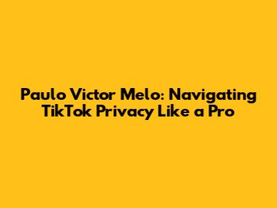 Paulo Victor Melo: Navigating TikTok Privacy Like A Pro