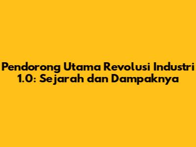 Pendorong Utama Revolusi Industri 1.0: Sejarah Dan Dampaknya