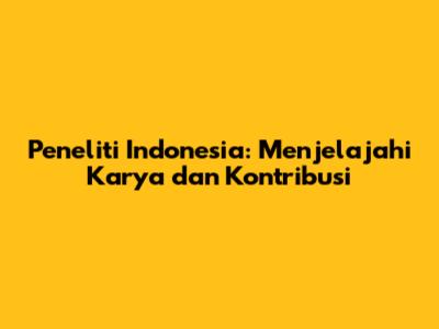 Peneliti Indonesia: Menjelajahi Karya Dan Kontribusi