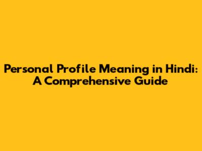 Personal Profile Meaning In Hindi: A Comprehensive Guide