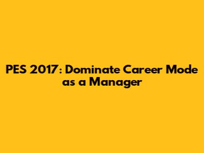 PES 2017: Dominate Career Mode As A Manager