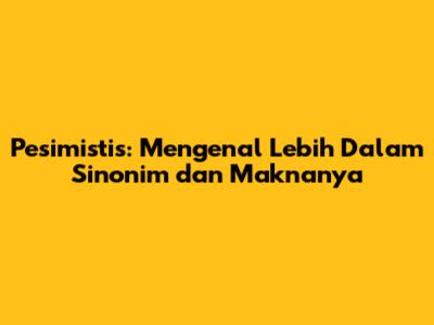 Sebelum membahas lebih jauh tentang sinonim pesimistis, ada baiknya kita memahami dulu apa sebenarnya arti dari kata ini. Pesimistis adalah suatu sikap atau pandangan yang cenderung melihat segala sesuatu dari sisi negatif atau buruk. Orang yang pesimistis biasanya merasa tidak memiliki harapan baik, meragukan keberhasilan, dan seringkali merasa cemas atau khawatir tentang masa depan. Sikap pesimistis ini bisa muncul karena berbagai faktor, seperti pengalaman masa lalu yang kurang menyenangkan, tekanan hidup, atau bahkan karena bawaan karakter.