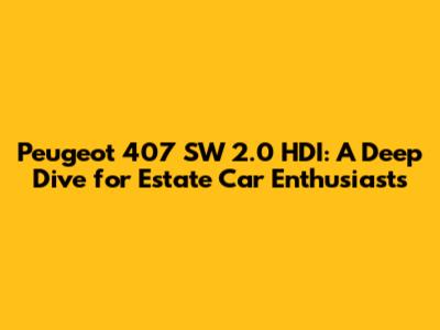 Peugeot 407 SW 2.0 HDI: A Deep Dive for Estate Car Enthusiasts