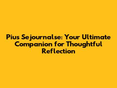Pius Sejournalse: Your Ultimate Companion for Thoughtful Reflection