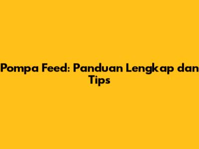 Pompa Feed: Panduan Lengkap Dan Tips