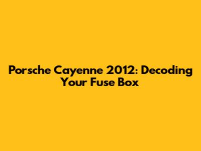 Porsche Cayenne 2012: Fuse Box Diagrams & Guide