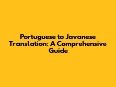 Portuguese To Javanese Translation: A Comprehensive Guide