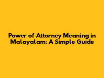 Power Of Attorney Meaning In Malayalam: A Simple Guide