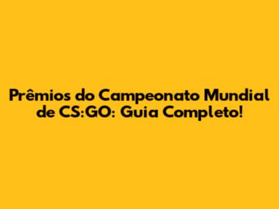 Prêmios Do Campeonato Mundial De CS:GO: Guia Completo!
