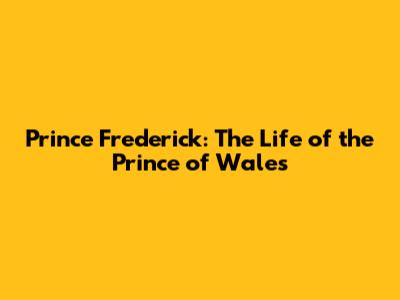 Prince Frederick: The Life Of The Prince Of Wales