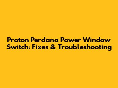 Proton Perdana: Power Window Switch Fixes & Troubleshooting
