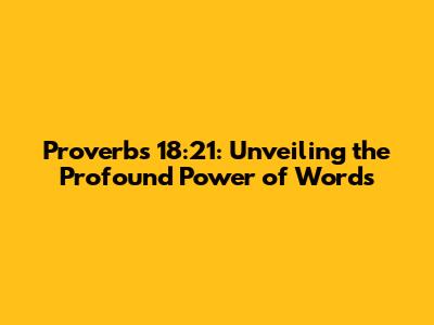 Proverbs 18:21: The Power Of Words & Their Impact