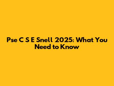 Pse C S E Snell 2025: What You Need To Know