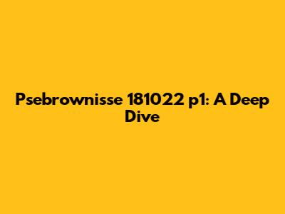 Psebrownisse 181022 P1: A Deep Dive