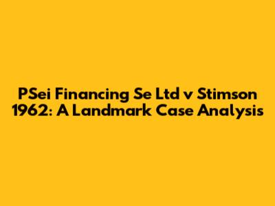 Let's dive into a pivotal legal battle: PSei Financing Se Ltd v Stimson (1962). This case revolves around contract law, specifically looking at offers, acceptances, and the fine line between a firm offer and a mere option. Understanding the nuances of this case is super important for anyone studying contract law, dealing with business agreements, or just curious about how legal commitments are made. So, buckle up as we break down the facts, the legal issues, and the judgment that shaped the understanding of contractual obligations.