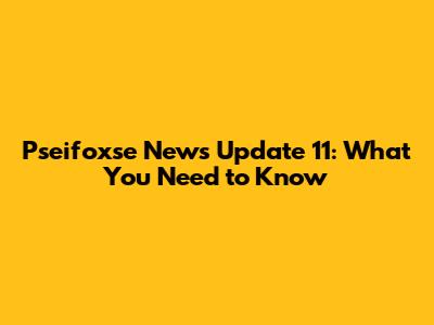 Pseifoxse News Update 11: What You Need To Know