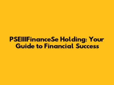 PSEIIIFinanceSe Holding: Your Guide To Financial Success