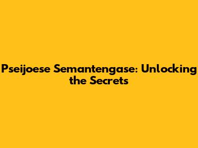 Pseijoese Semantengase: Unlocking The Secrets
