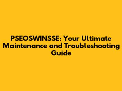 PSEOSWINSSE: Your Ultimate Maintenance And Troubleshooting Guide