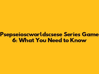 Psepseioscworldscsese Series Game 6: What You Need To Know