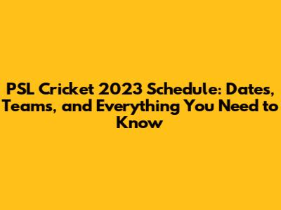 PSL 2023 Schedule: Dates, Teams, And Everything You Need To Know