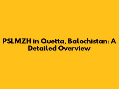 PSLMZH In Quetta, Balochistan: A Detailed Overview