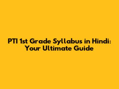 PTI 1st Grade Syllabus In Hindi: Complete Guide