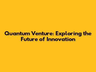 Quantum Venture: Exploring The Future Of Innovation