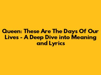 Hey music lovers! Ever gotten chills listening to a song that just gets you? Well, that's exactly what happens when I hear Queen's legendary track, "These Are The Days Of Our Lives." Seriously, guys, this song is pure magic! It's not just a song; it's a nostalgic trip, a bittersweet reflection on life, and a beautiful farewell wrapped into one. I'm going to break down the lyrics, the meaning, and all the juicy details behind this iconic song. So, grab your headphones, get comfy, and let's dive into the world of Queen!