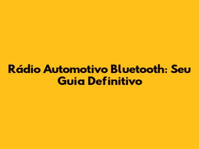 Rádio Automotivo Bluetooth: Guia Completo E Dicas