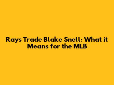Rays Trade Blake Snell: What It Means For The MLB