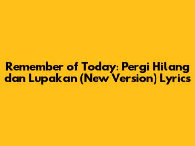 Remember Of Today: Pergi Hilang Dan Lupakan (New Version) Lyrics