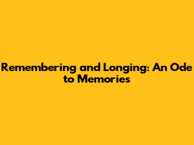 Remembering And Longing: An Ode To Memories