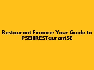 Restaurant Finance: Your Guide To PSEIIIRESTaurantSE